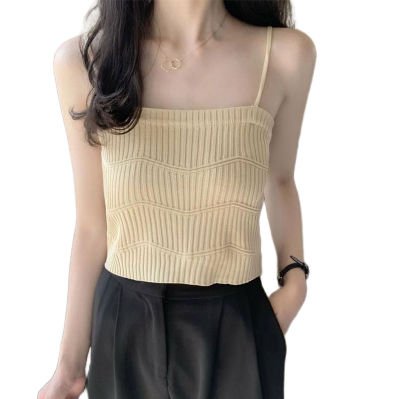 Phụ nữ mùa hè Spaghetti Dây đeo lệch vai Áo yếm dệt kim Sọc gợn sóng Màu rắn Crop Top Cơ bản Đáy mỏng Trang bị Sling Vest Đồ lót Thương hiệu mới và chất lượng cao