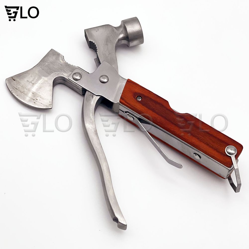 Búa đa năng 7 trong 1 bao gồm đóng, , kìm cắt, cưa cắt, vặn ốc, mở đồ hộp, kìm kẹp, dụng cụ thoát hiểm với kích thước nhỏ gọn tiện lợi khi mang theo đi du lịch, dã ngoại xa nhà. Búa đa năng 7 trong 1 được làm từ thép không gỉ bền chắc và sáng đẹp, chịu lực, mang lại hiệu quả sử dụng lâu dài. Cán búa được bọc gỗ tạo cảm giác êm ái khi cầm và cảm giác thoải mái khi sử dụng Được tích hợp 7 chức năng trong 1 bao gồm: đầu búa để đóng, kiềm, lưỡi dao, tua vít 4 cạnh, mở nắp chai, cưa sắt và cưa gỗ. Là công cụ hỗ trợ hiệu quả cho việc sửa chữa các đồ dùng trong nhà hay khi đi phượt, dã ngoại, cắm trại. Kích thước vô cùng nhỏ gọn với chiều dài chỉ 16cm, thích hợp cho những chuyến du lịch, dã ngoại xa nhà.