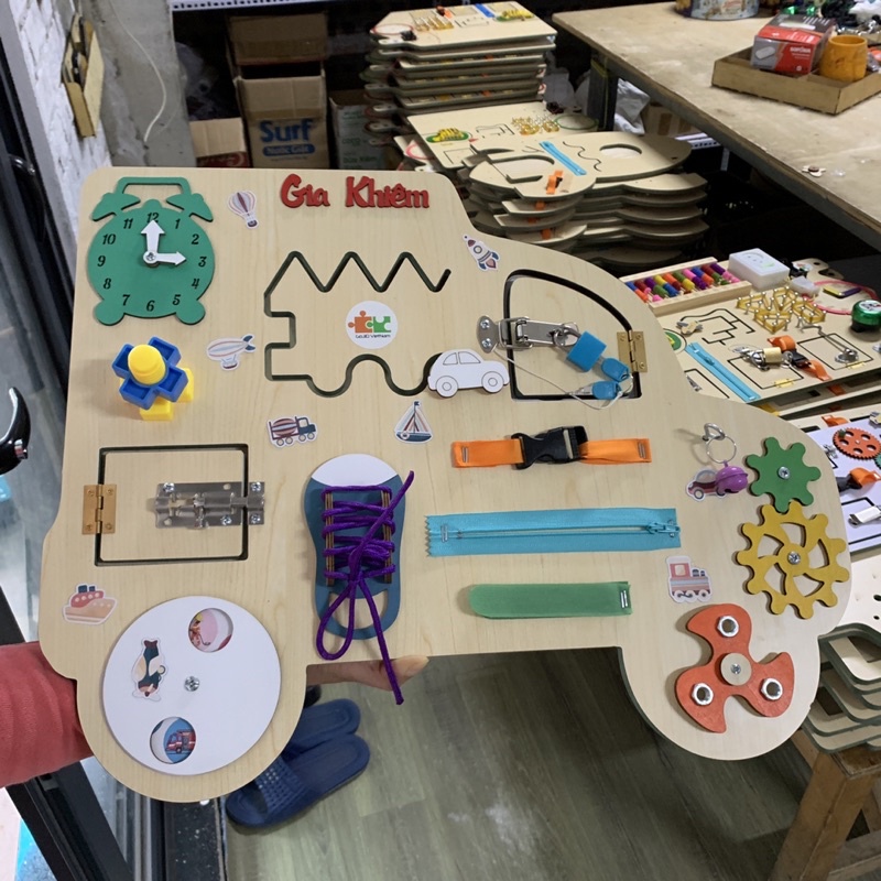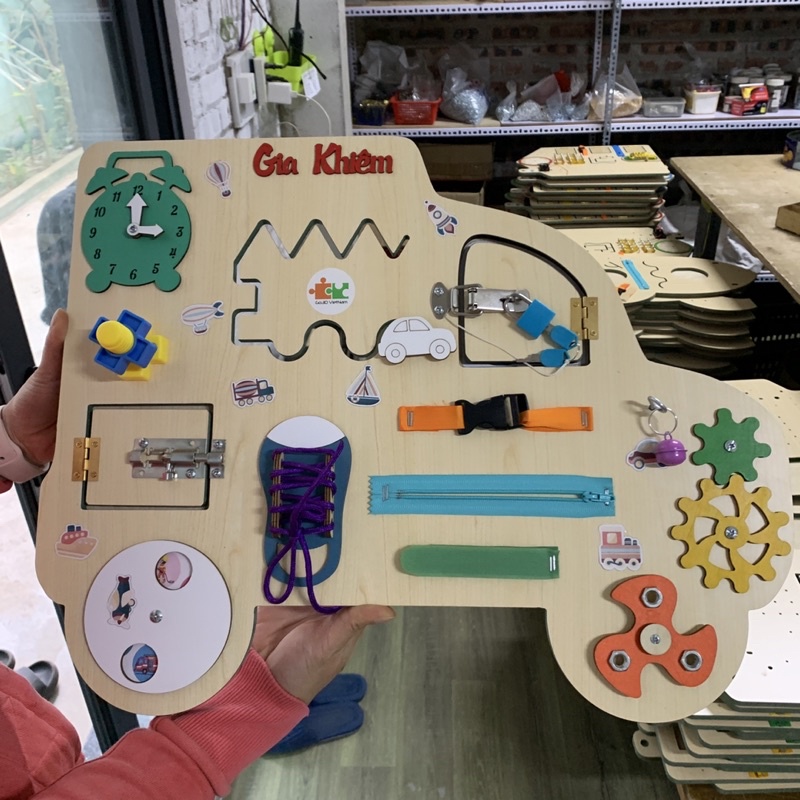 Busy board bảng bận rộn hình xe ô tô Trực tiếp từ Xưởng sản xuất Khắc tên riêng cho bé theo yêu cầu (30phút là xong) Giao hàng ngay Hoả Tốc ✔️ Size: 40 x 50 x 5 cm (đóng hộp carton) ✔️ Hơn 20 món đồ ✔️ Chất liệu: Gỗ an toàn ✔️ Các chi tiết được sơn màu màu vẽ acrylic an toàn Giao hàng ngay - Ship toàn quốc
