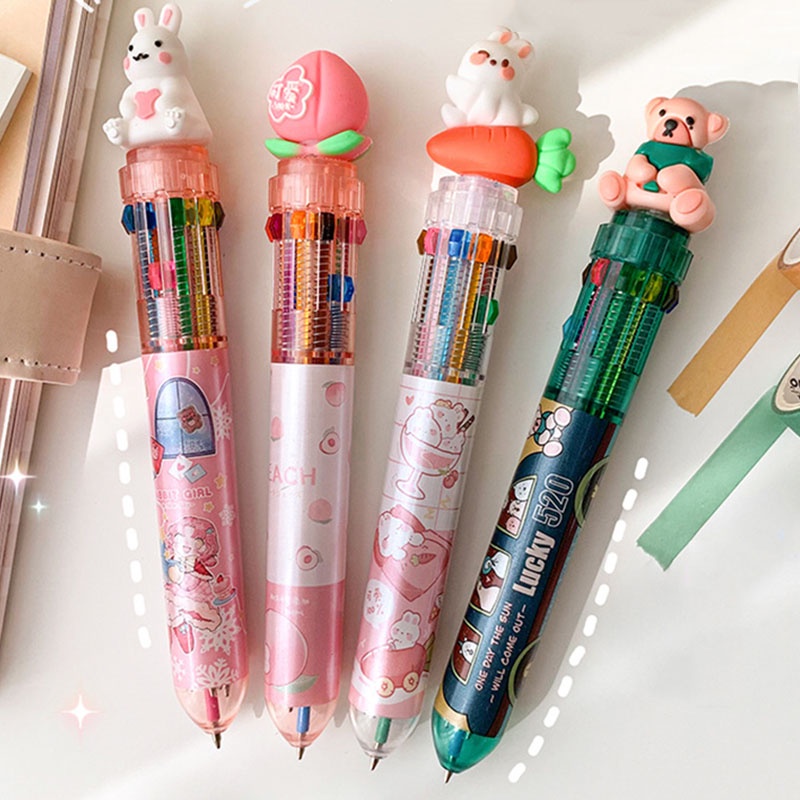 Giới thiệu Bút Bi 10 Màu Hình Động Vật Dễ Thương Cho Học Sinh/Văn Phòng