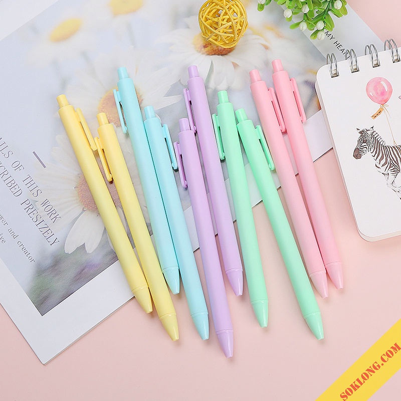 Giới thiệu Bút bi bấm màu Macaron mực đen nét 0.5mm nét trơn xinh xắn B22