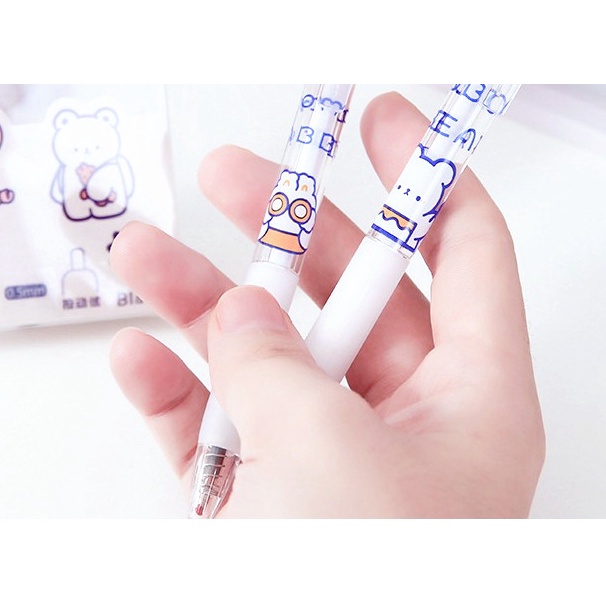 Giới thiệu Bút Bi Bấm Mực Đen, Bút Gel Trong Suốt Ngòi 0.5mm Họa Tiết Gấu Dễ Thương