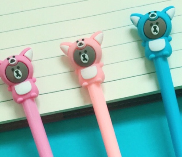 Bút Nước Hình Đẹp Mấy bé gấu này trông rất ngộ nghĩnh trong bộ quần áo có hai cái tai vểnh xinh xinh. Bút bi nước ngòi nhọn mực đen, có 3 màu như trong hình. #bút #butbinuoc #bútnước