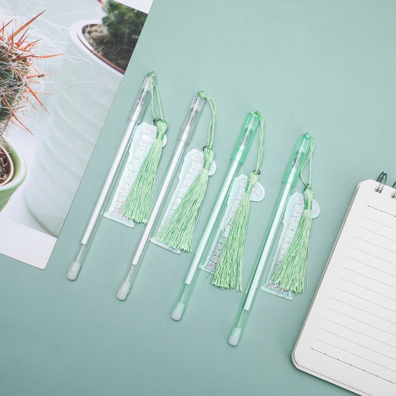 Còn gì thuận tiện hơn là những chiếc bút đi kèm với cả thước kẻ? Bạn có thể sử dụng cả 2 trong 1 rất tiện lợi, lại còn đẹp lung linh nữa chứ. Thước kẻ nhựa rất dày nhé. Bút bi nước mực đen ngòi nhọn. #bút #bútbinuoc #butnuoc