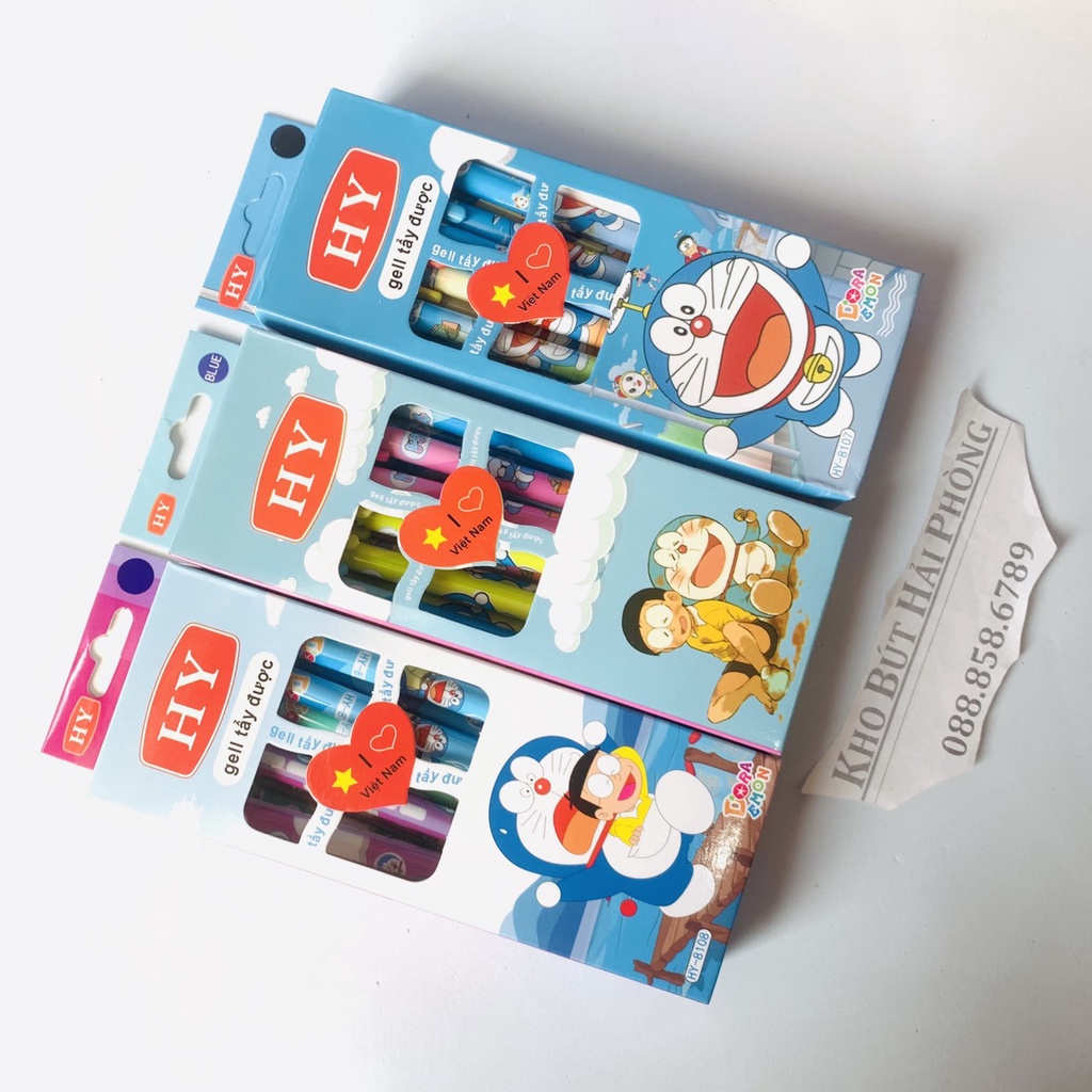 Hộp 12 cây bút mực tím xóa được Doremon HY. Bút bi- bút gel xóa được Bút mực xóa được Doraemon xóa được tiện lợi như một cây bút chì bình thường với 1 đầu viết, 1 đầu dùng để xóa sạch vết mực đã viết là sản phẩm cần thiết cho hs, sv...