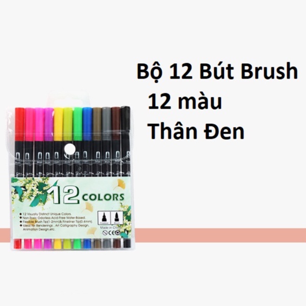 Giới thiệu Bút brush 2 đầu bộ 12 cây viết calligraphy HAKI, bút dạ màu marker trang trí sổ bullet journal văn phòng phẩm B48