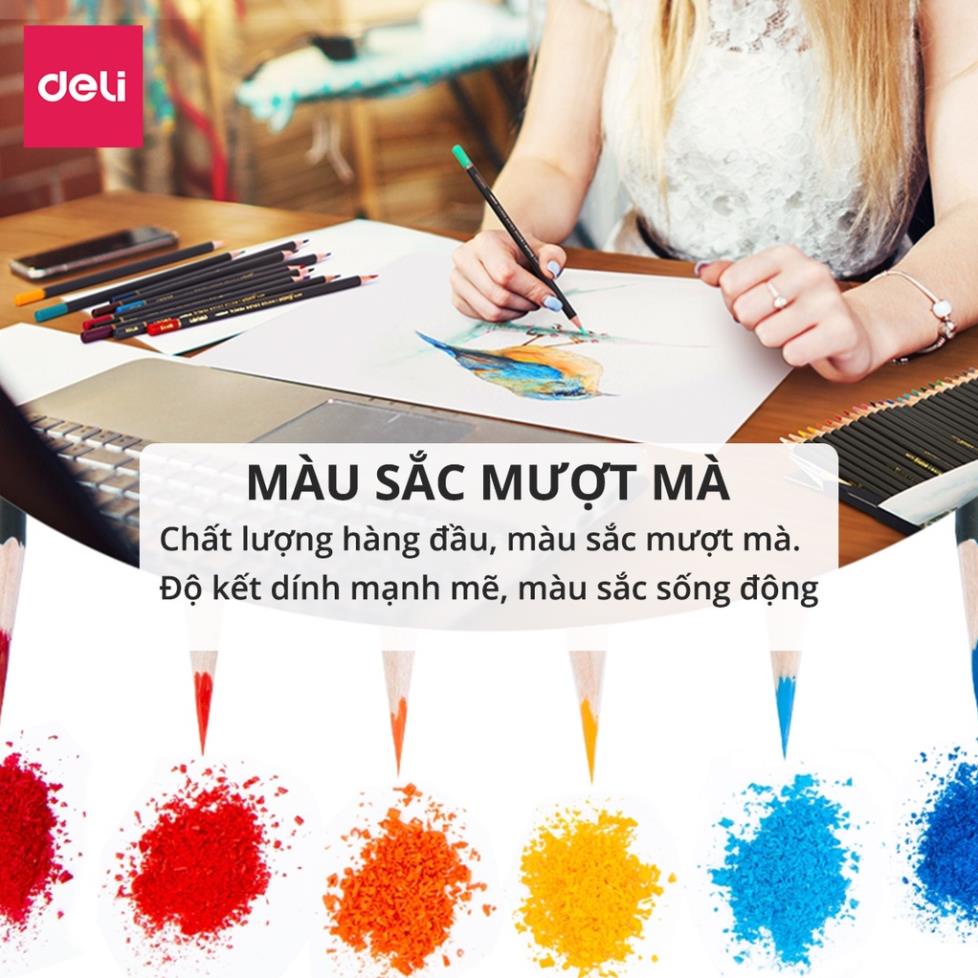 TÍNH NĂNG SẢN PHẨM: ✔️Bút chì màu nước cao cấp của Deli với nhiều số lượng màu khác nhau phù hợp với nhu cầu của khách hàng ✔️Màu sắc sặc sỡ, nét chì trơn tru mang lại trải nghiệm tuyệt vời. ✔️Kích thước bút: φ7.1mmx177mm ✔️Thân bút hình trụ, dễ dàng cầm nắm ✔️Hộp có kèm 01 bút lông