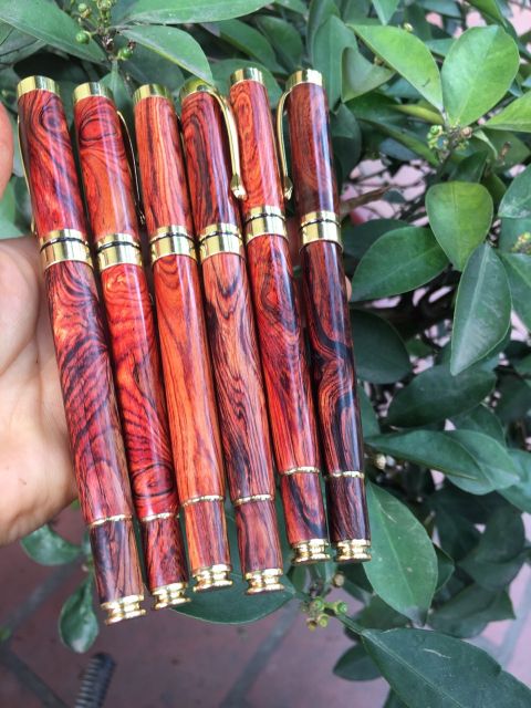 Ý nghĩa Được sản xuất bởi bàn tay KHÉO LÉO của người dân làng nghề truyền thống tiện gỗ Nhị Khê- Thường Tín -Hà Nội Bút Gỗ Sưa Đỏ là sản phẩm bút kí cao cấp dùng cho các Doanh nhân thành đạt, Sản phẩm được khai thác từ những cây gỗ xưa quý hiếm lâu năm. Vỏ bút làm từ gỗ sưa cao cấp, vân mây, làm nổi bật lên chiếc bút với màu vàng nâu của sưa. Ngòi bút được chuyển từ bút Parker sang, độ bền cao, ký trơn, lâu mòn. Với sức khỏe: mùi thơm nhẹ của gỗ sưa có tác dụng hành khí, hoạt huyết, nhờ đó sức khỏe của những người bị tim mạch, dạ dày, cao huyết áp trở nên khá tốt. Tâm linh: người xưa luôn quan niệm gỗ sưa có thể đuổi tà ma, ngăn chặn nguồn năng lượng xấu, mang may mắn cho người sử dụng. Thường được làm quà tặng mang ý nghĩa đem lại bình an, vượng tài lộc cho người sỡ hữu Tính ứng dụng cao: Bút gỗ dùng làm quà tặng cho bạn bè, đối tác, người thân. Có thể để trang trí bàn làm việc, tủ bút và tất nhiên, bút ký được dùng trong đời thường để ký giấy tờ công việc cũng như các dịp trọng đại khác. Hiện chúng tôi đang cung cấp các loại Bút Gỗ Sưa Đỏ cao cấp khác nhau với giá thành rẻ nhất thị trường cùng chất lượng hàng đầu. -----------------------------------------------------------