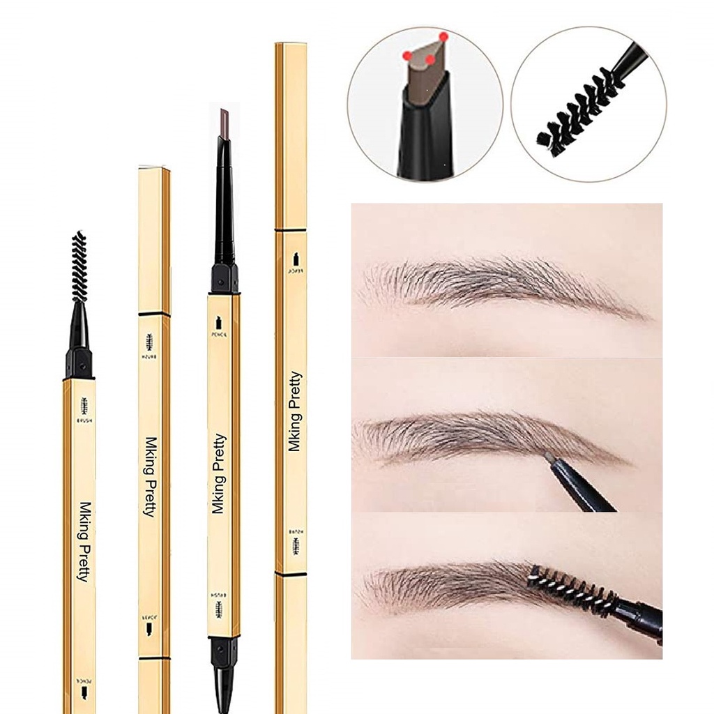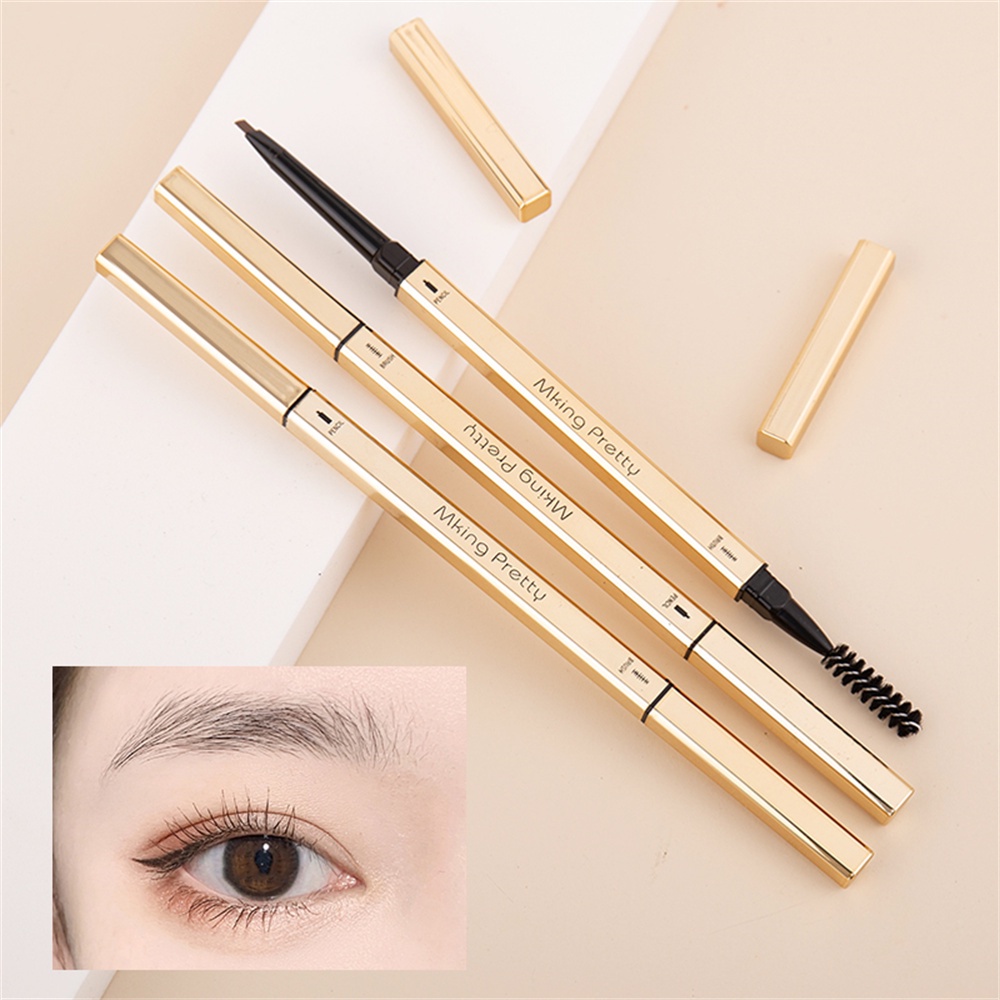 1. Chì kẻ mày, Trang điểm lông mày với đầu kép, có đầu giọt nước mắt, đường viền chính xác, dễ dàng tạo sắc thái, thậm chí tô lông mày. Sử dụng điểm nhỏ của bút chì có cắt tam giác, tạo các nét giống như tóc bằng cách thoa áp lực nhẹ và vuốt theo hướng Rằng tóc mọc