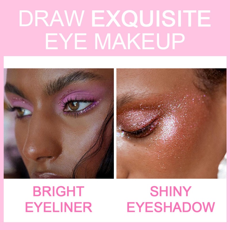 Mô tả: Kẻ mắt dạng lỏng long lanh đầy màu sắc; Kết cấu mịn, mượt mà không dễ bay. Trang điểm nhẹ và màu sắc nhẹ nhàng. Nó không thấm nước và chống mồ hôi, và không dễ bị bẩn. Hiệu quả trang điểm lâu trôi, không dễ trôi. Kết cấu nhẹ và tinh tế, dễ kéo dài. Nó có thể được sử dụng để vẽ phấn mắt, làm sáng cơ thể, làm sáng môi, tô điểm móng tay, phụ kiện tóc, kẻ mắt, tô màu, v.v.