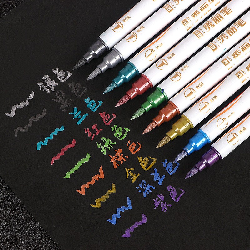 Giới thiệu Bút lông 2 Đầu (brush/ tròn) màu kim tuyến cao cấp - Thích hợp viết thiệp & tiêu đề bài