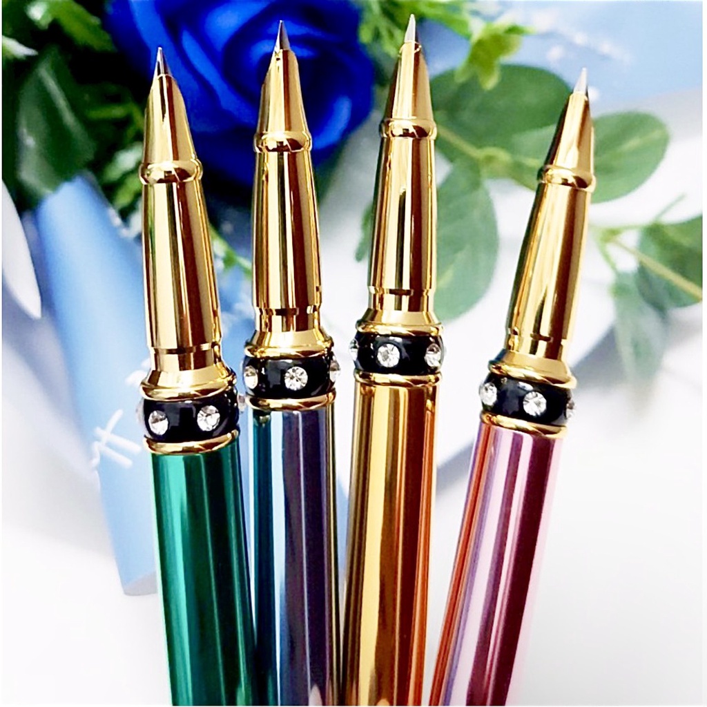 -Ngòi lá tre loại 1, ngòi mềm,đàn hồi tốt,nét mảnh , tạo thanh đậm tự nhiên - vỏ bút có đính đá rất ấn tượng. - có 4 tông màu chính :vàng ,hồng,xanh lá, xanh da trời
