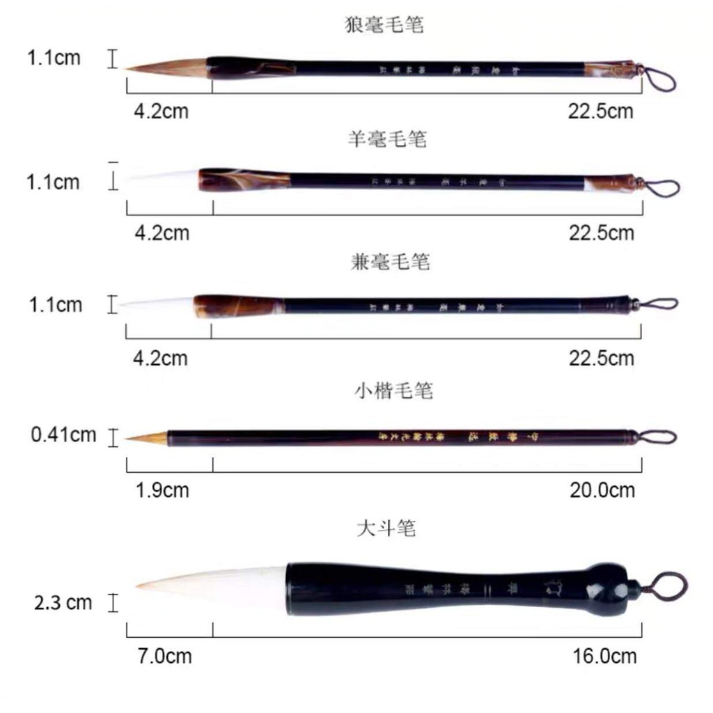 Một bộ với đầy đủ các dụng cụ đi kèm (16 loại) bao gồm : bút lông, ấn, triệt, gác bút, vở luyện viết, nghiên mực. mực. hộp bút...... Bút lông chất liệu cao cấp, khi viết tạo cho chữ thanh mảnh, gồm 5 bút với các kích thước như hình. hộp bút đi kèm cũng rất nhỏ gọn, các bạn có thể mang đi dễ dàng tiện lợi.