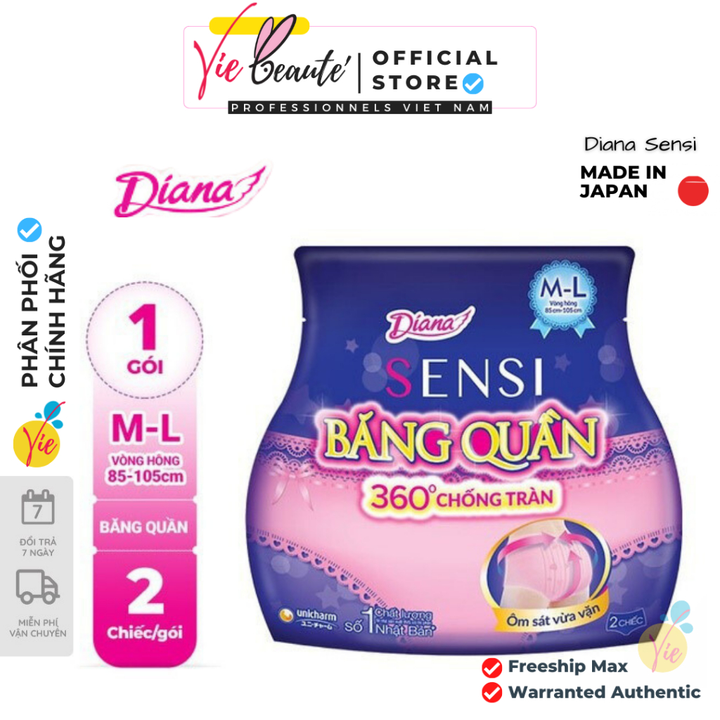 Giới thiệu BVS Diana Ban Đêm - Băng Vệ Sinh Diana Sensi Dạng Quần Size M-L & S-M 2 Chiếc/Gói