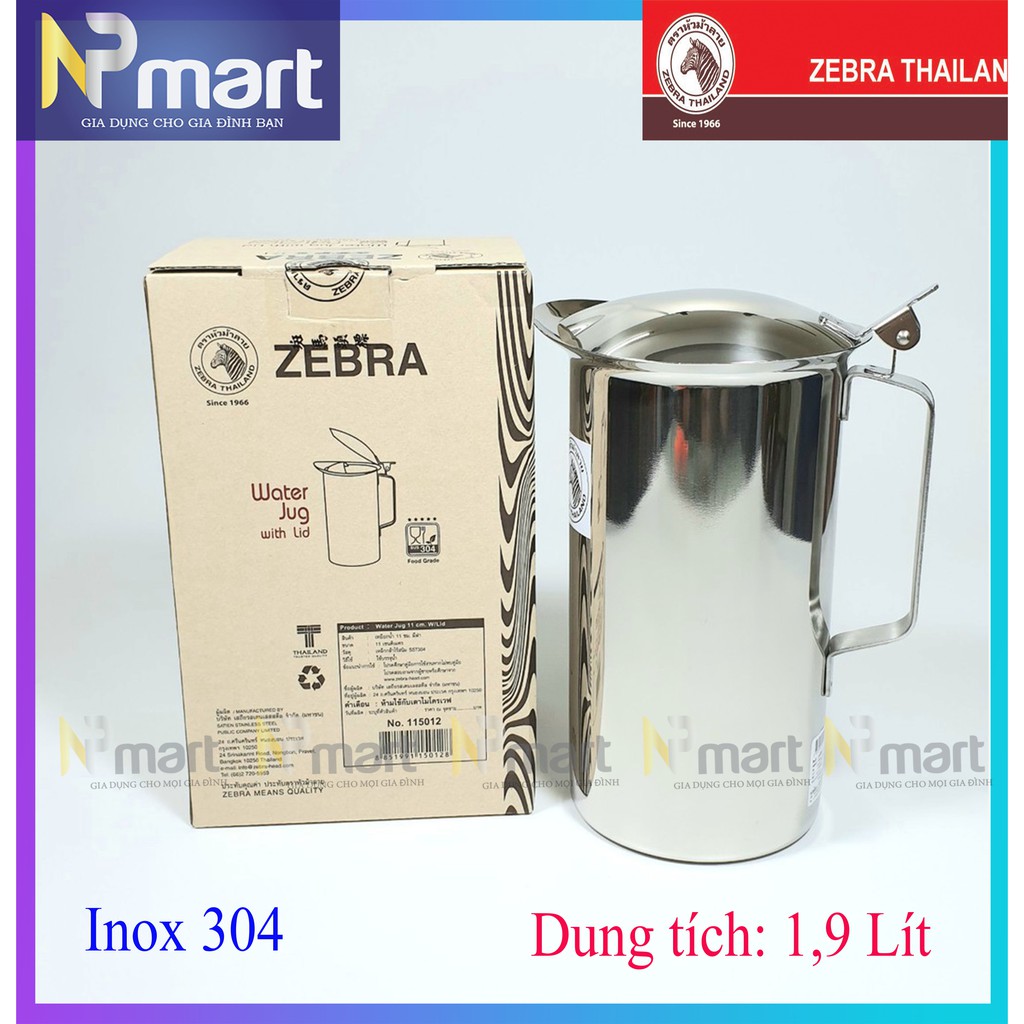 Giới thiệu Ca đựng nước inox 304 cao cấp Zebra có nắp 1.9L 115012 - 11cm