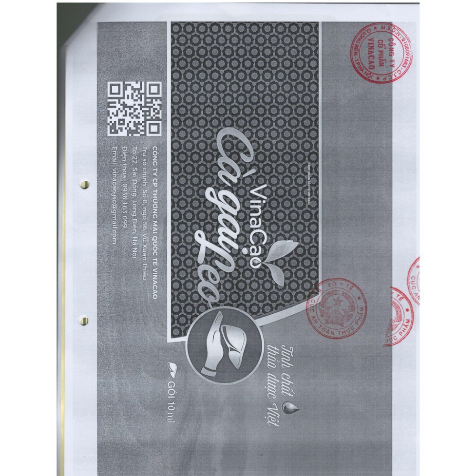 1. Thành phần: Cà gai leo: 6900mg, nước vừa đủ 15mg/gói 2. Đối tượng sử dụng: Người có chức năng gan suy giảm do: viê.m gan, x.ơ gan, men gan cao, gan nhi.ễm mỡ Người uống nhiều rư.ợu bi.a có hại cho gan 3. Cách sử dụng: - Có thể uống trực tiếp vì sản phẩm dễ tan trong miệng hoặc pha loãng với 200ml nước - Ngày uống 2-3 lần, mỗi lần 1 gói 4. Công dụng sản phẩm: - Giúp mát gan, phục hồi và tăng cường tái tạo tế bào gan - Giúp tăng cường chức năng gan trong các trường hợp suy giảm chức năng gan do: viê.m gan, x.ơ gan, gan nh.iễm mỡ, men gan cao, uống nhiều rư.ợu b.ia có hại cho gan - Giúp tăng cường chức năng giải độc gan, bảo vệ tế bào gan 6. Tiêu chuẩn: TCCS 7. Bảo quản: Nơi khô ráo, thoáng mát, tránh ánh nắng trực tiếp 8. Nhà sản xuất: Công ty Cổ phần Vinacao Sản phẩm này không phải là thuốc và không có tác dụng thay thế thuốc chữa bệnh ------------------------------------- THẢO DƯỢC VINACAO CAM KẾT CUNG CẤP SẢN PHẨM CHÍNH HÃNG 100% - NÓI KHÔNG VỚI HÀNG GI.Ả, HÀNG NH.ÁI, HÀNG KÉM CHẤT LƯỢNG