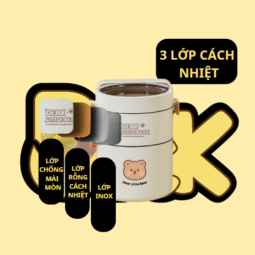 Hộp Cơm Cách Nhiệt Nhiều Tầng Chất Liệu Inox 304 Chống Tràn Kèm Túi Đựng Hoạ Tiết Gấu DEAR LITTLE BEAR _Cà men cơm là khái niệm xưa cũ thì chiếc cà men cơm này lại là đại diện cho hiện đại, cho trẻ trung và năng động. _Nhiều tầng chuyên biệt tránh lẫn mùi kèm ron cao su chắc chắn chống tràn kể cả khi dốc ngược. _Thích hợp dân văn phòng, dã ngoại hay những người ưa thích di chuyển, thích hương vị cơm gia đình hay đơn giản chỉ là mang theo thức ăn cho một buổi dã ngoại. _Kèm túi xách có lớp lót cách nhiệt tránh bị ướt mưa vào bên trong đồng thời luôn giữ ấm thức ăn một cách kì diệu. _Đặc biệt sản phẩm này có thể đun trực tiếp trên bếp điện hoặc lò vi sóng. THÔNG SỐ KĨ THUẬT _Chất liệu: Thép Không Rỉ, Inox304 _Xuất xứ: nội địa Trung _Phân Loại: * 2 tầng: 20,5x13,5cm * 3 tầng: 26,5x13,5cm