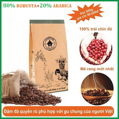 Cà Phê BLEND GU VIỆT 80% Robusta+20% Arabica Túi 500g rang mộc Giá DEXT