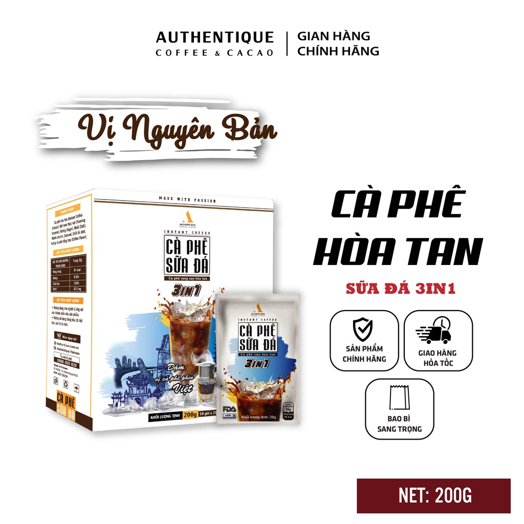 Giới thiệu Cà phê sữa đá pha sẵn hòa tan 3in1 (20G x 10Gói) - Đậm vị cà phê | Authentique Instant Coffee