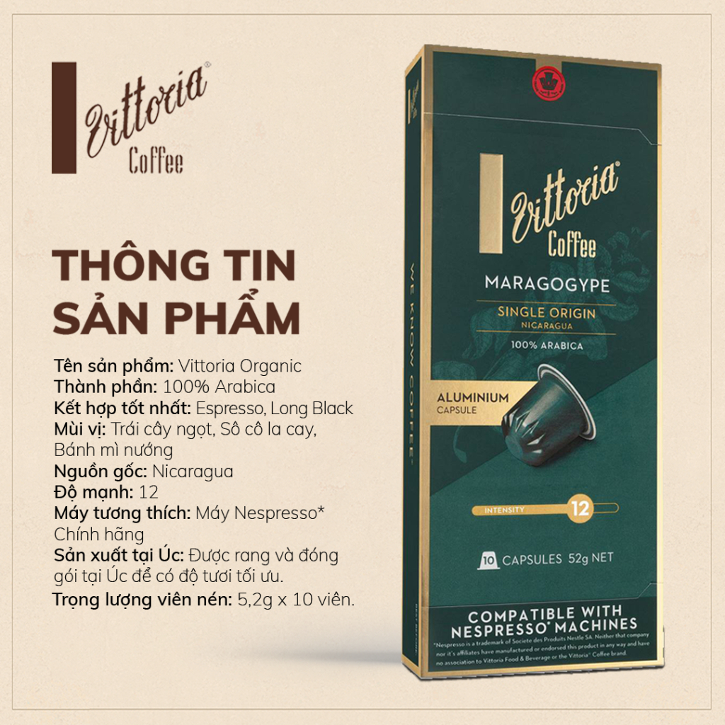 Giới thiệu Cà phê Viên nén cà phê Victoria capsules Nespresso - MARAGOGYPE mùi Trái cây ngọt, Sô cô la cay, Bánh mỳ nướng
