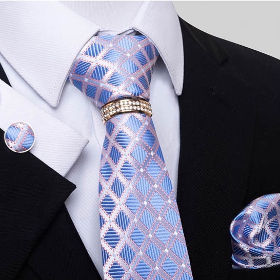 Giới thiệu Bộ Cà vạt 4 món gồm Cavat 8cm, khăn cài túi, Măng-set, Nhẫn tròn phụ kiện, Cravat chú rể, Calavat công sở CBC-8243