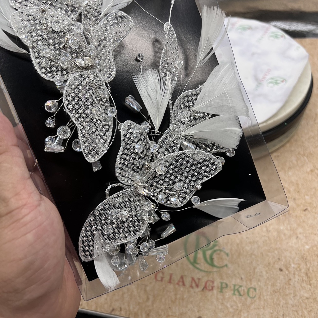 Giới thiệu Cài tóc cô dâu lưới hoa nhũ kết lông vũ mẫu mới t7/2023 Phụ kiện cưới Giang cài hoa được làm thủ công bền đẹp.