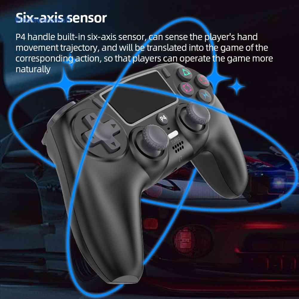Bộ điều khiển chơi game Bluetooth-Tương thích4.0 Điều khiển từ xa chơi game Rung kép 600mA Pin sạc cho PS4 / PS3 / PC Đặc điểm: 1. Kết nối không dây: Bộ điều khiển trò chơi không dây tương thích Bluetooth P4 có thể kết nối không dây với bảng điều khiển PS4 thông qua công nghệ Tương thích Bluetooth, cho phép người chơi chơi trò chơi thoải mái hơn mà không bị giới hạn bởi kết nối có dây. 2. Thiết kế hiệu ứng ánh sáng: Bộ điều khiển chơi game này sử dụng thiết kế hiệu ứng ánh sáng và màu sắc ánh sáng có thể thay đổi khi trò chơi tiến bộ, mang đến cho người chơi trải nghiệm chơi game đắm chìm hơn. 3. Cảm biến sáu trục: gamepad cần điều khiển trò chơi không dây có cảm biến sáu trục tích hợp có thể cảm nhận được hoạt động của tay người chơi và chuyển đổi nó thành các hành động tương ứng trong trò chơi, cho phép người chơi vận hành trò chơi Tự nhiên hơn. 4. Phản hồi rung kép: Điều khiển từ xa chơi game được trang bị động cơ rung kép, có thể tạo ra hiệu ứng rung tương ứng tùy theo những thay đổi trong cảnh trò chơi, cho phép người chơi cảm nhận tình huống trò chơi đắm chìm hơn. 5. Khả năng tương thích: Ngoài khả năng tương thích với bảng điều khiển PS4 / PS3 / PC, bộ điều khiển này còn có khả năng tương thích với bảng điều khiển PS5, cho phép người chơi tận hưởng trải nghiệm chơi game tuyệt vời tương thích với PS5.