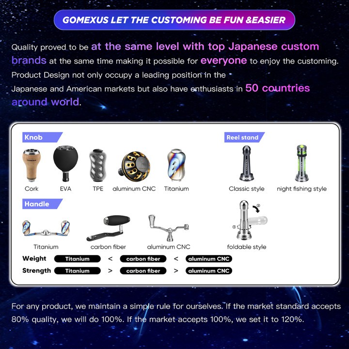 【TAY CẦM MÁY CÂU CÁ】 1. Nút tay cầm trợ lực của Gomexus bao gồm một vòng bi trơn bằng thép không gỉ, giúp tăng độ nhạy để người câu có thể cảm nhận chính xác chuyển động của mồi dưới nước và vết cắn nhỏ nhất. 2. Tay cầm bằng sợi carbon của Gomexus là phần cứng siêu nhẹ và hoạt động hoàn hảo. So với kim loại, sợi carbon nhẹ hơn. Thiết kế bề mặt độc đáo, bạn sẽ không bị trượt và làm rơi hết lần này đến lần khác như thường xảy ra trên tay cầm thông thường