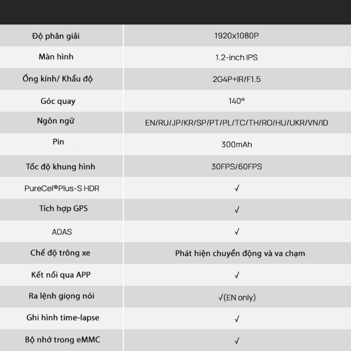 - Độ phân giải: 1080P
