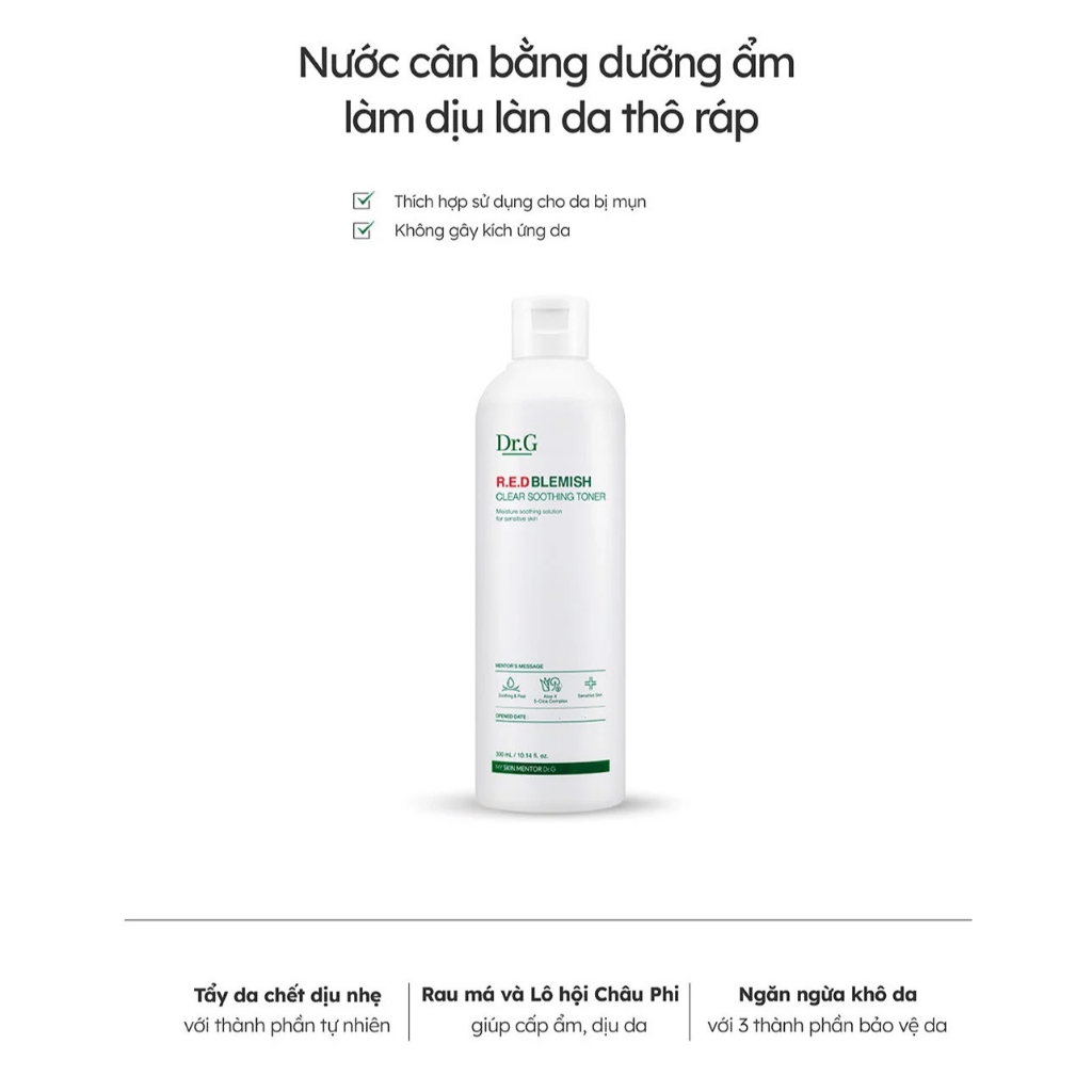 Nước Cân Bằng Dr.G R.E.D Blemish Clear Soothing Toner 300ml Xuất xứ: Hàn Quốc Dung tích: 300ml