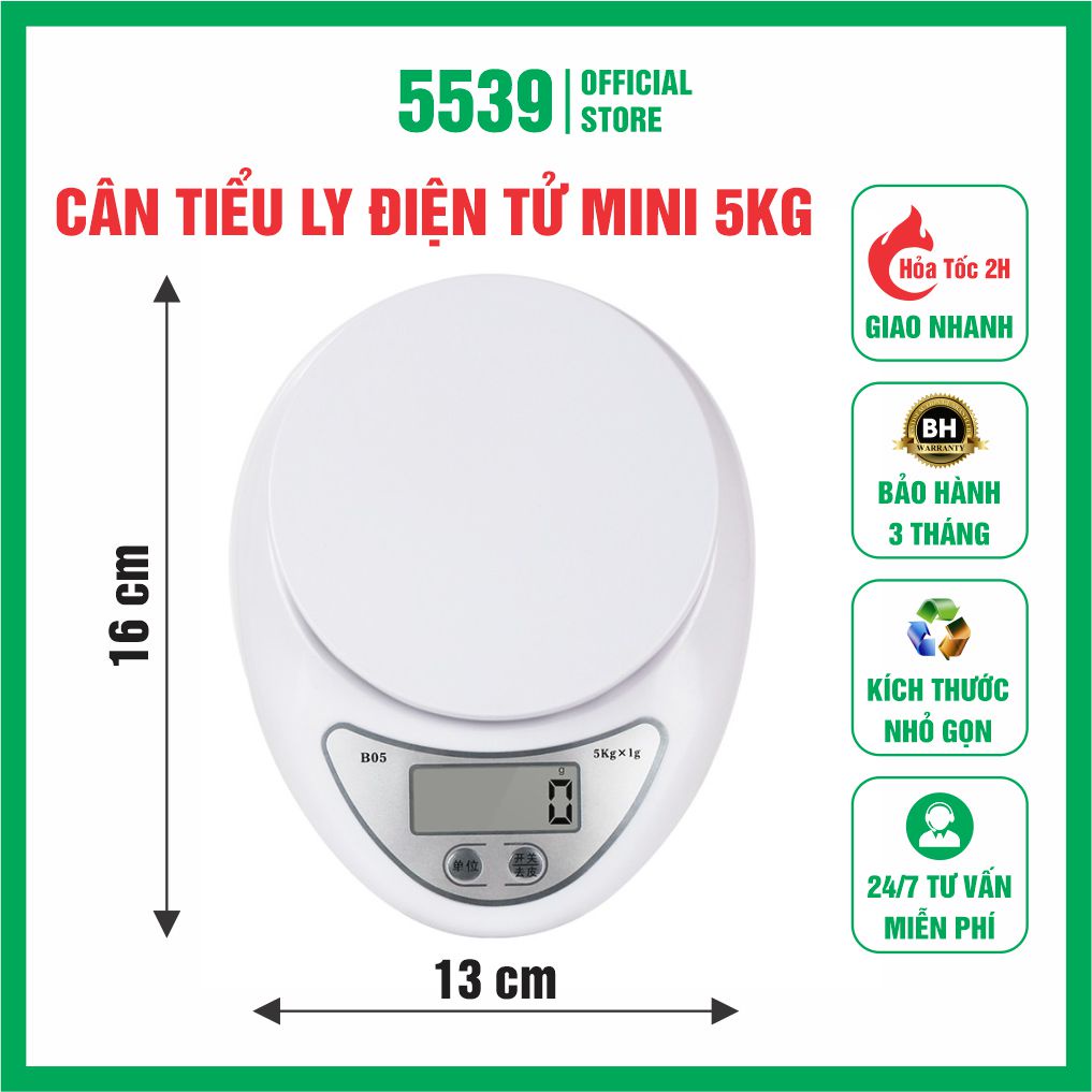 Nhà Cửa & Đời Sống > Đồ dùng nhà bếp và hộp đựng thực phẩm > Dụng cụ làm bánh. > Cân tiểu ly điện tử nhà bếp mini, cân tiểu li mini 5 kg độ chính xác cao hàng loại 1 tặng kèm 2 Pin 3A - Shop 5539