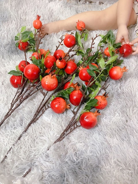 Giới thiệu Cành lựu trang trí cành dài 80cm 7 quả lớn,giống thật 99% - HN