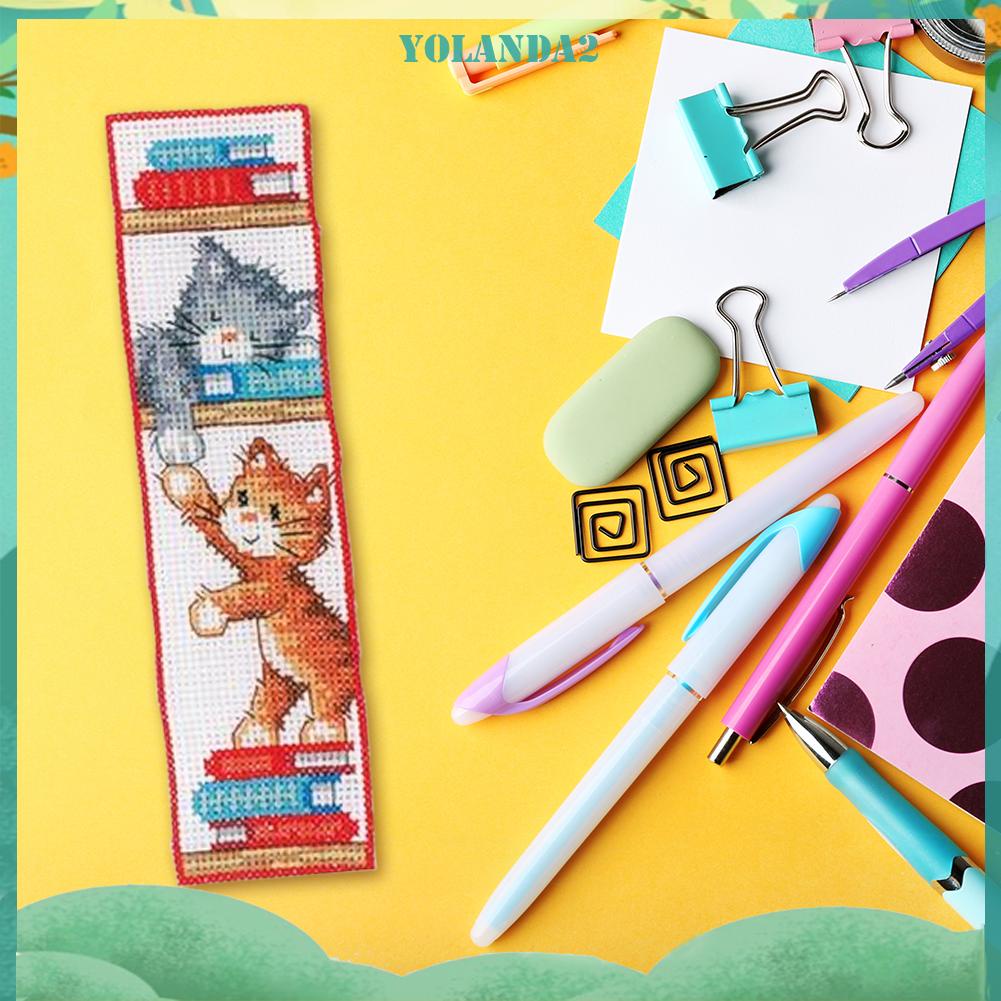 Giới thiệu (canvas no printing) Bộ dụng cụ đánh dấu sách vải cotton 14CT thêu hình mèo dễ thương