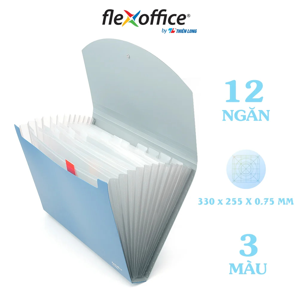 Thương hiệu Flexoffice Kích thước 320 x 234 x 36 mm Quy cách 1 cái/túi A4/12 ngăn Đơn vị tính cái Màu sắc Xanh/Xanh đậm/Đen Khả năng lưu trữ có khả năng lưu trữ nhiều tài liệu Bảo quản Tránh xa nguồn nhiệt, dầu mỡ. Mô tả:
