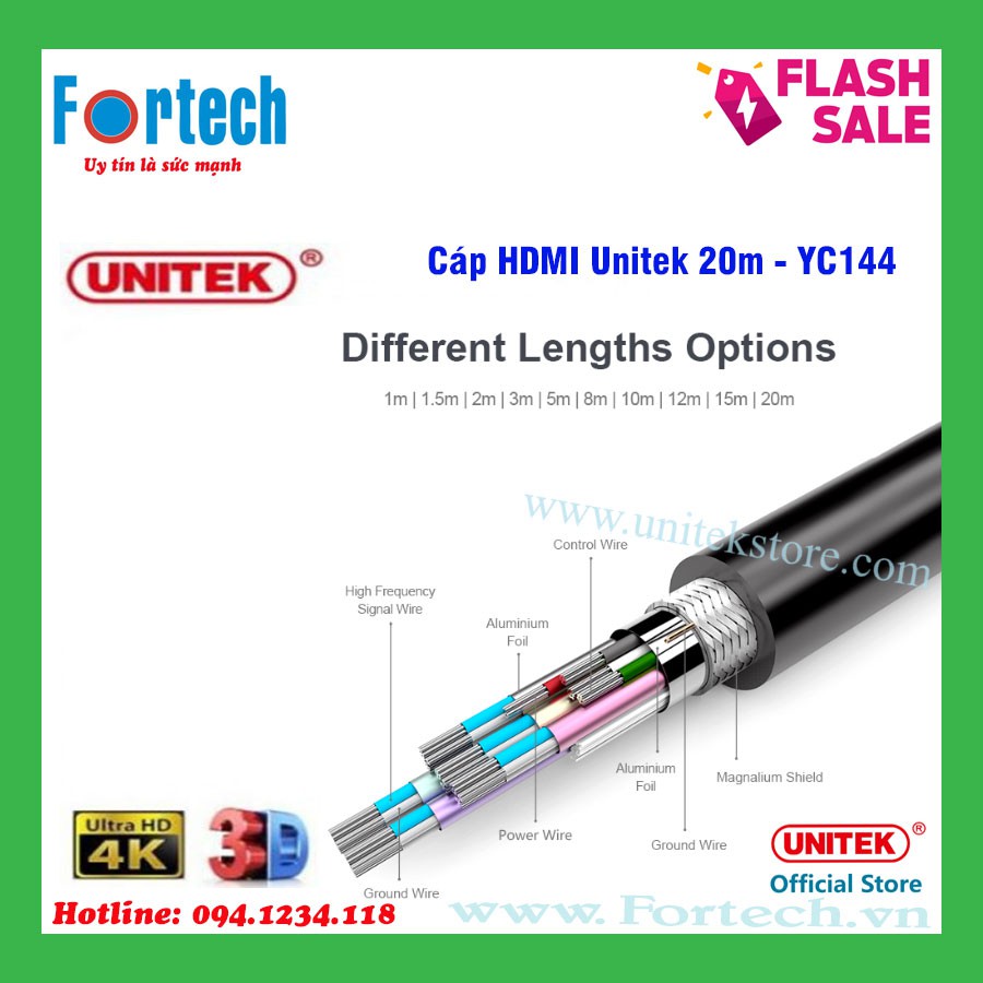 Giới thiệu Cáp HDMI Unitek 20m Y-C144 - hỗ trợ 4K Ultra HD và 3D