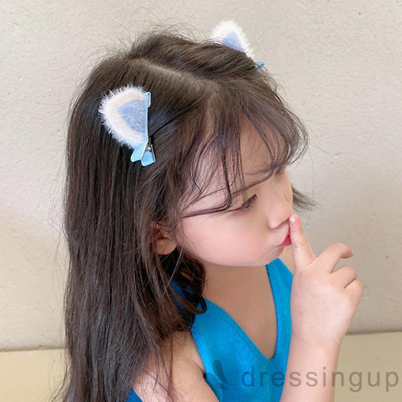Cặp kẹp tóc dành cho bé gái, kẹp tóc tai thú vải lông chống trượt đáng yêu làm quà tặng.
