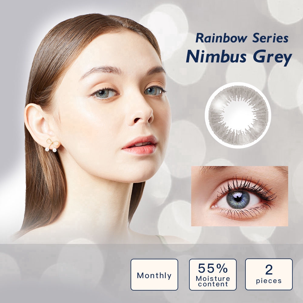 Giới thiệu Cặp kính áp tròng EllieCoo màu xám thuộc dòng Rainbow chống tia cực tím tinh chất Axit Hyaluronic
