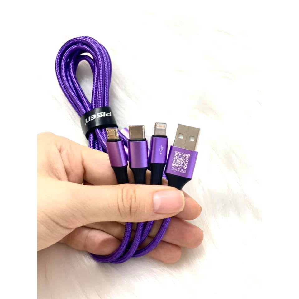 Điện Thoại & Phụ Kiện > Pin Gắn Trong, Cáp và Bộ Sạc > Cáp Sạc và đầu chuyển đổi > Cáp PISEN 3 trong 1 (L/ Type-C/ Micro ) backlight 1800mm, sạc nhanh, model: LS-AP13-1800, bảo hành 24 tháng