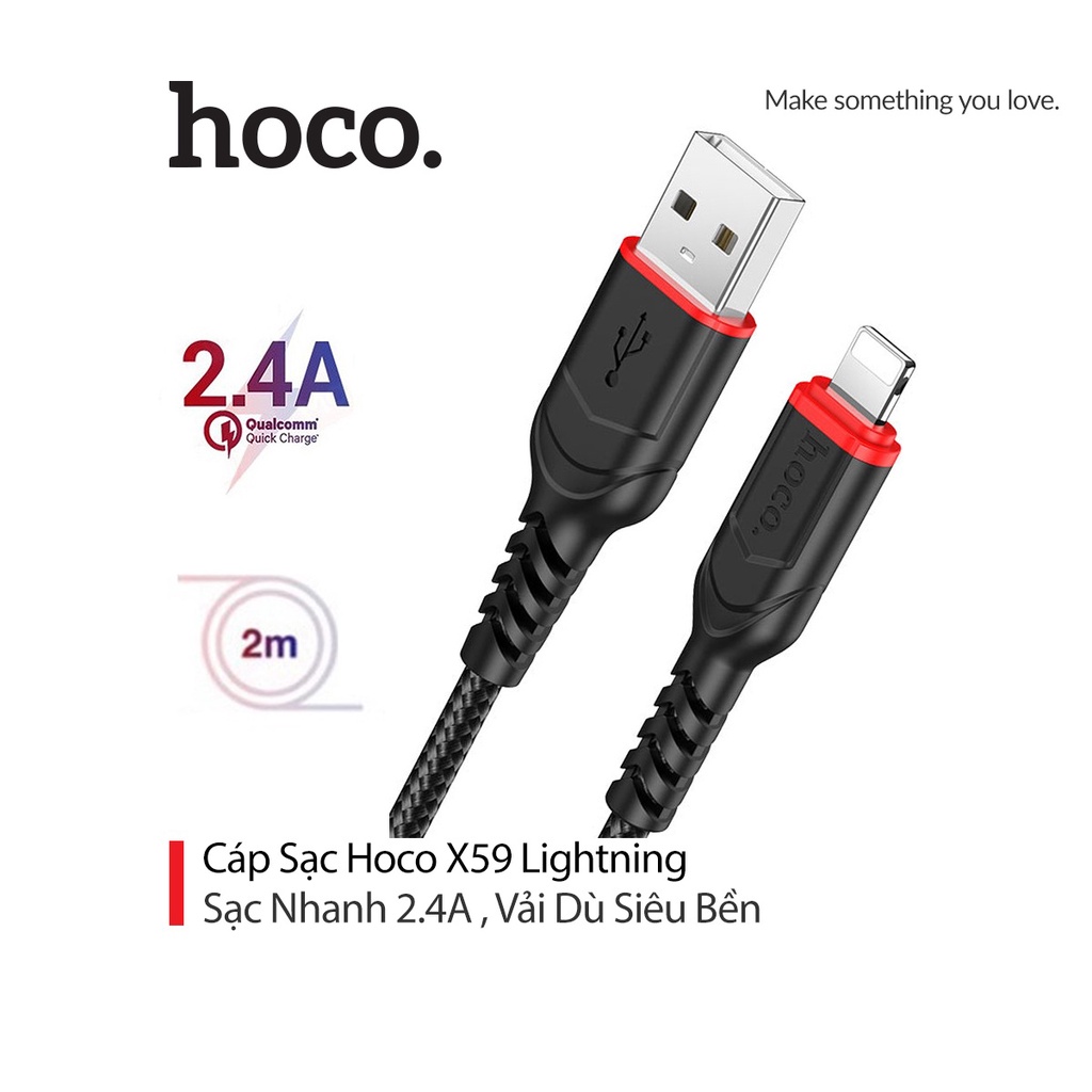 Điện Thoại & Phụ Kiện > Pin Gắn Trong, Cáp và Bộ Sạc > Cáp Sạc và đầu chuyển đổi > [Mã BMLTA50 giảm đến 50K đơn 99K] Cáp sạc 2.4A hoco. X59 dây dù siêu bền dài 2M cho Smartphone ( Tá.o )