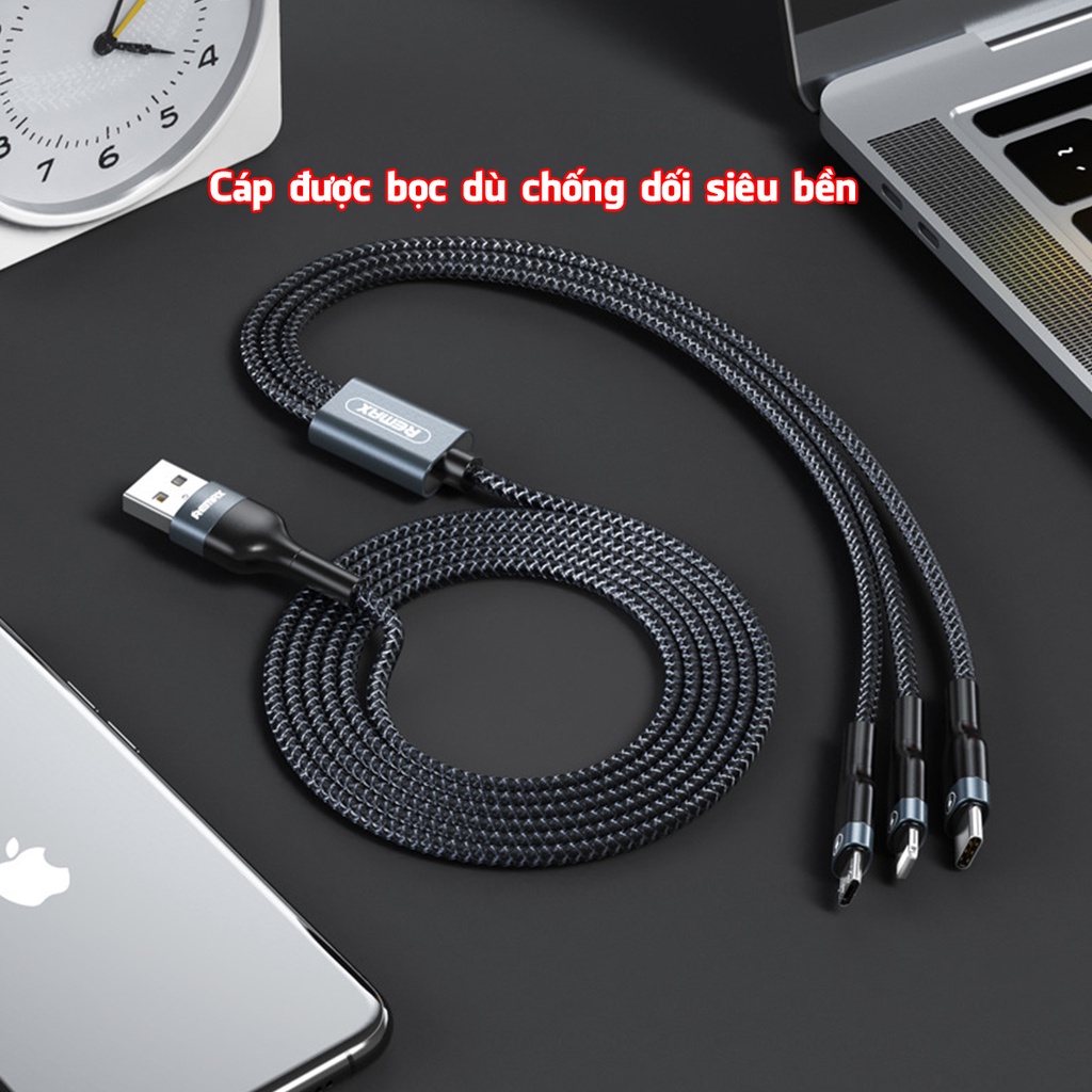 Điện Thoại & Phụ Kiện > Pin Gắn Trong, Cáp và Bộ Sạc > Cáp Sạc và đầu chuyển đổi > Cáp sạc 3 in 1 RC - 070 TH Cáp sạc 3 đầu, TypeC, Micro USB hỗ trợ sạc 3 thiết bị cùng lúc || FTMOBILE