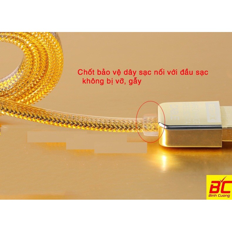 Dây mạ gold để tăng cường tín hiệu truyền, chống hóa ăn mòn Cáp Sạc Chính Hãng Remax GOLD