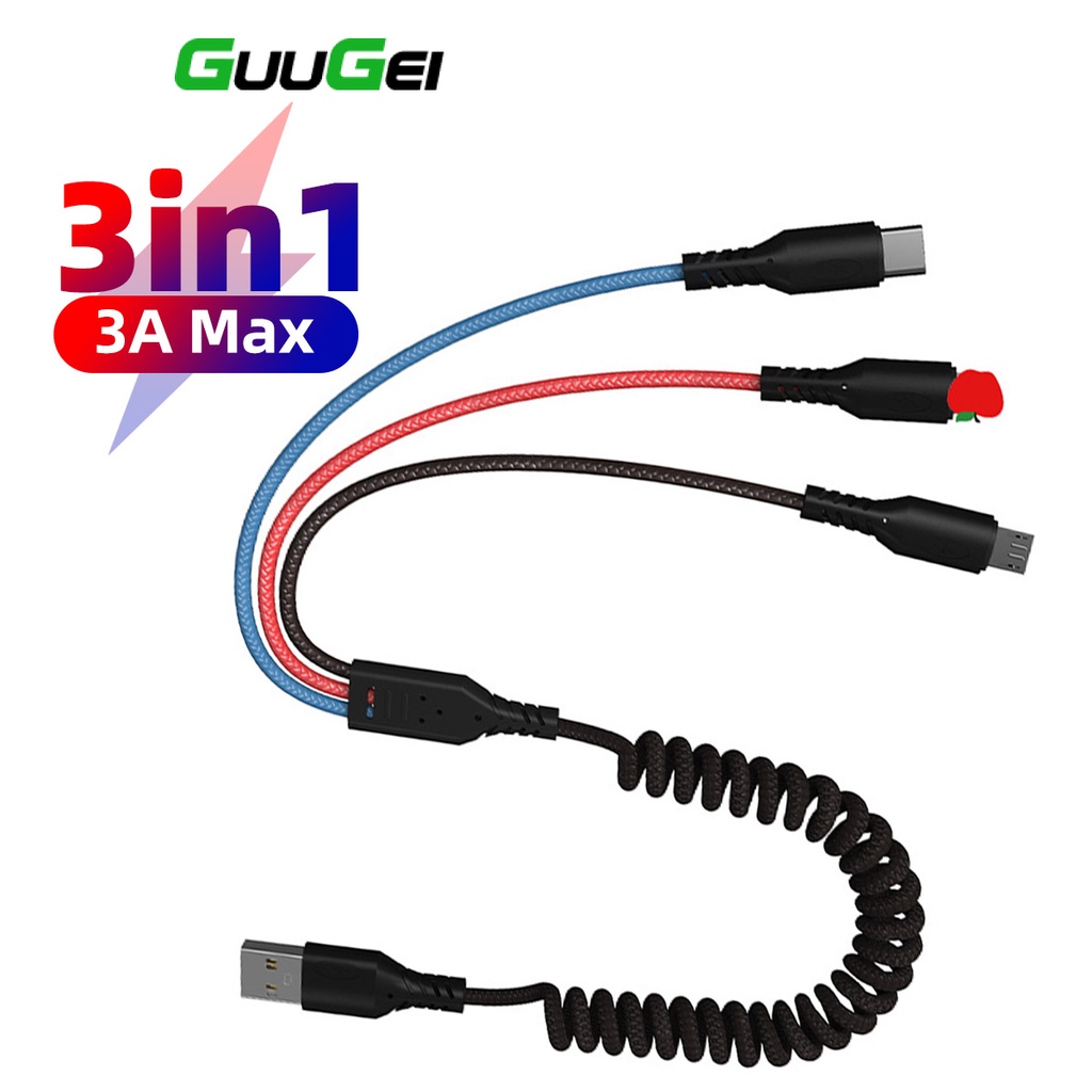 Giới thiệu Cáp sạc GUUGEI 3 trong 1 3A cổng USB Type C 2.4A Micro USB IOS cho nhiều điện thoại