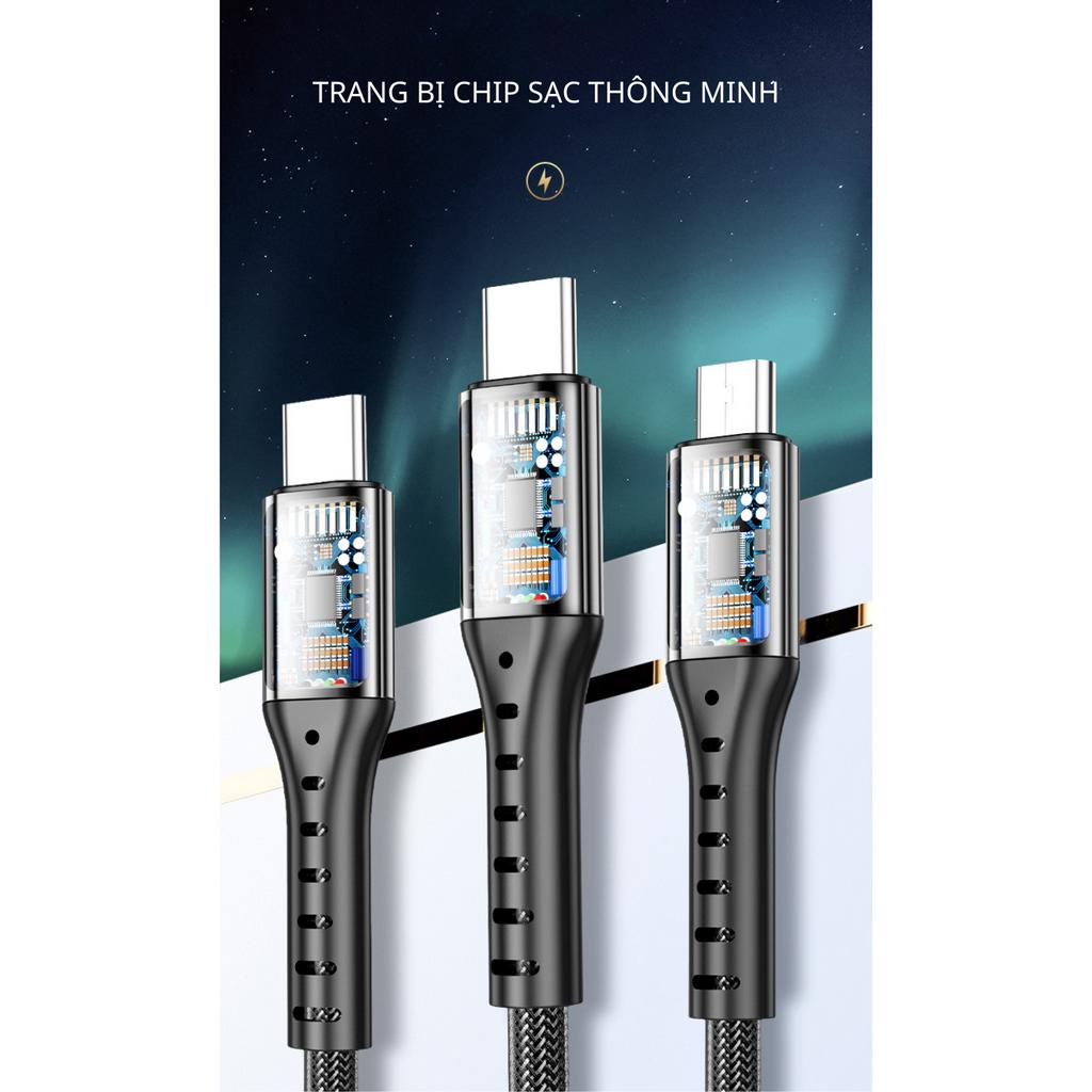 Giới thiệu Cáp Sạc Nhanh 5A 66W 3 Trong 1 Chiều Dài 1,2m (3 in 1) Dây Bọc Dù Siêu Bền Chống Đứt Gãy - Hàng Chính Hãng Tamayoko