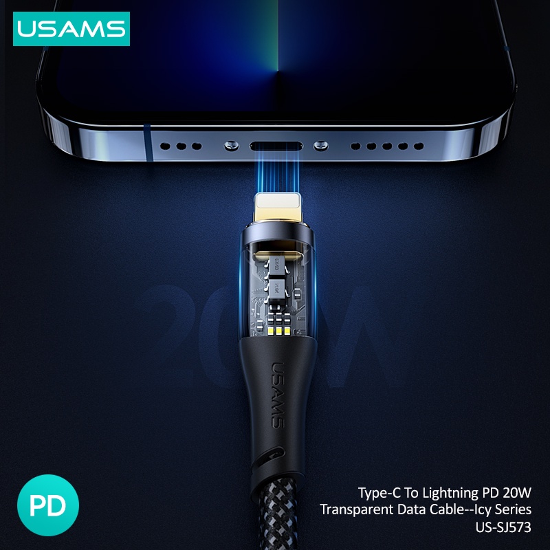 Giới thiệu Cáp sạc nhanh Usams PD 20W Type-C - IP bằng hợp kim nhôm trong suốt thích hợp cho điện thoại/máy tính bảng Iphone 11-14