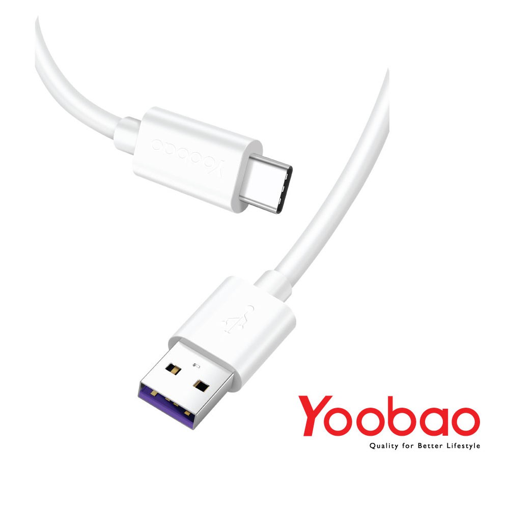 Cáp sạc và truyền dữ liệu USB Type C chính hãng YOOBAO Chiều dai 1m Vỏ nhựa TPE thân thiện môi trường Tốc độ truyền tải lên đến 480Mbps Tương thích với các thiết bị hỗ trợ cổng USB-C mới hiện nay Hỗ trợ nguồn lên đến 5A