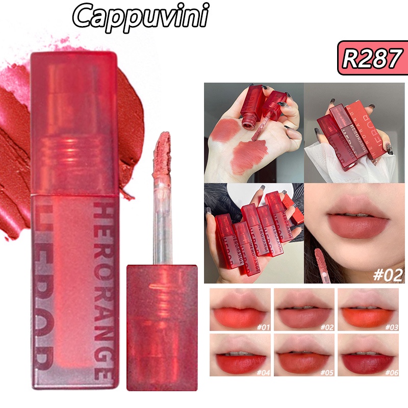 R287 Soft Mist Matte lip glaze: Dòng sản phẩm này mang lại cảm giác tuyệt vời khi sử dụng, son men nhung này mỏng manh hơn khi sử dụng, và đôi môi có lớp nền tốt sẽ không bị khô! Kết cấu nhẹ và mỏng, màu sắc bền, khả năng mở rộng siêu tốt. Bạn có thể thoa lên môi chỉ một chút và bạn sẽ không nhớ độ dày