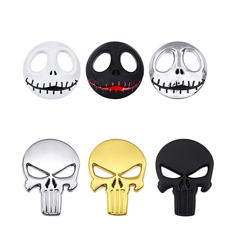 Ô Tô & Xe Máy & Xe Đạp > Phụ kiện bên ngoài ô tô > Logo, sticker, miếng dán > Car Personality Metal Skull Head Car Logo Wansheng Harley Skull Bumper Stickers Rear Car Badge Side Seam Label Head Logo Car Body Sticker 4b3l