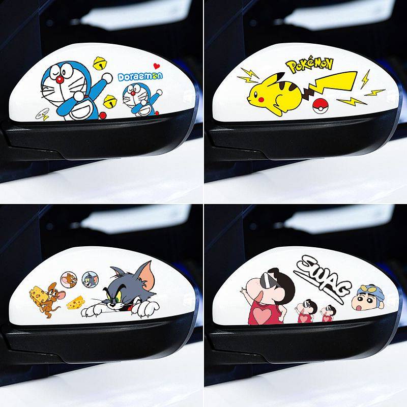 Cartoon Cute Pokonyan Car Rearview Mirror Sticker Cat and Mouse Rearview Mirror Scratch Cover Cover Decorative Stickers WrLrGiá shibai