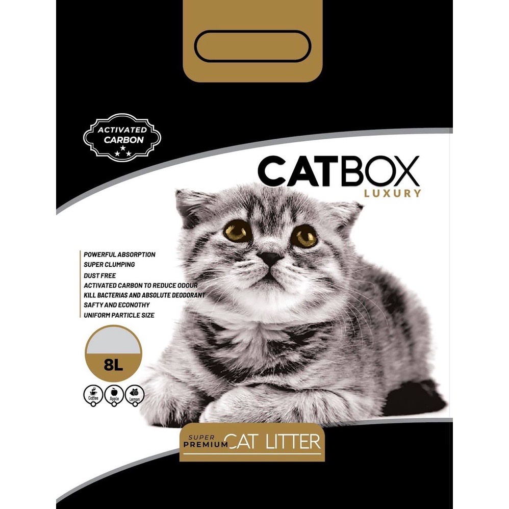 Cát vệ sinh có thành phần than hoat tính CATBOX Luxury - Mùi thơm dịu nhẹ từ tinh dầu tự nhiên nhưng lại khử mùi cực tốt dù trong môi trường kín hay để qua đêm. - Hạt cát đất sét cỡ đồng đều nên gần như không có bụi. - Khả năng khóa ẩm cực nhanh, độ vón cao, giúp Sen tiết kiệm được chi phí cũng như thời gian dọn dẹp phục vụ Boss.