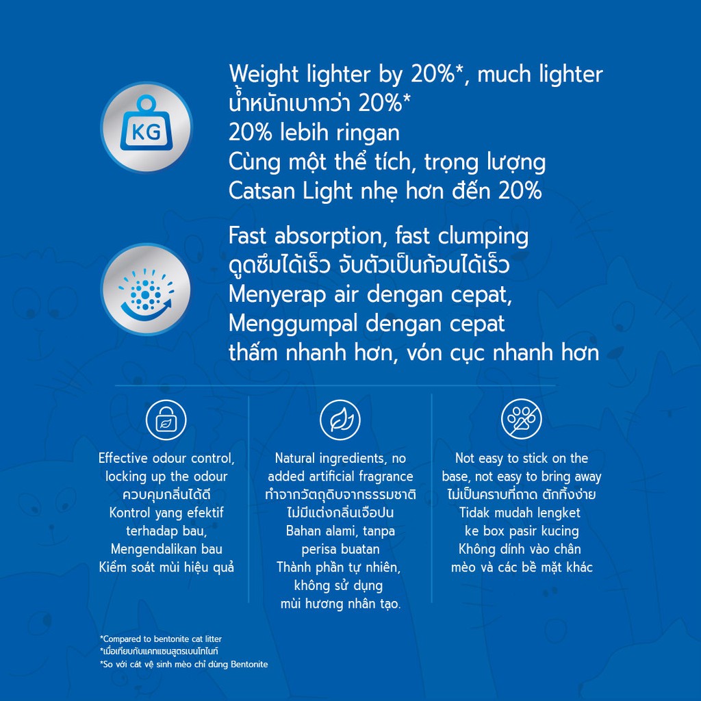 ● NHẸ HƠN 20% - Cát vệ sinh cho mèo CATSAN nhẹ hơn đến 20% các loại thông thường